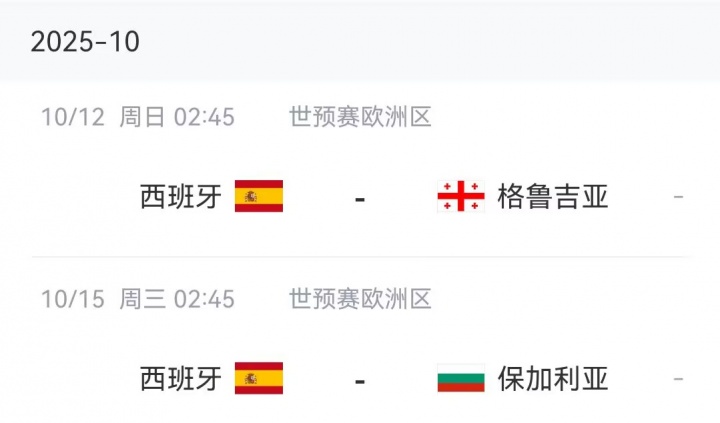 Lịch thi đấu tháng 10 của Tây Ban Nha↓